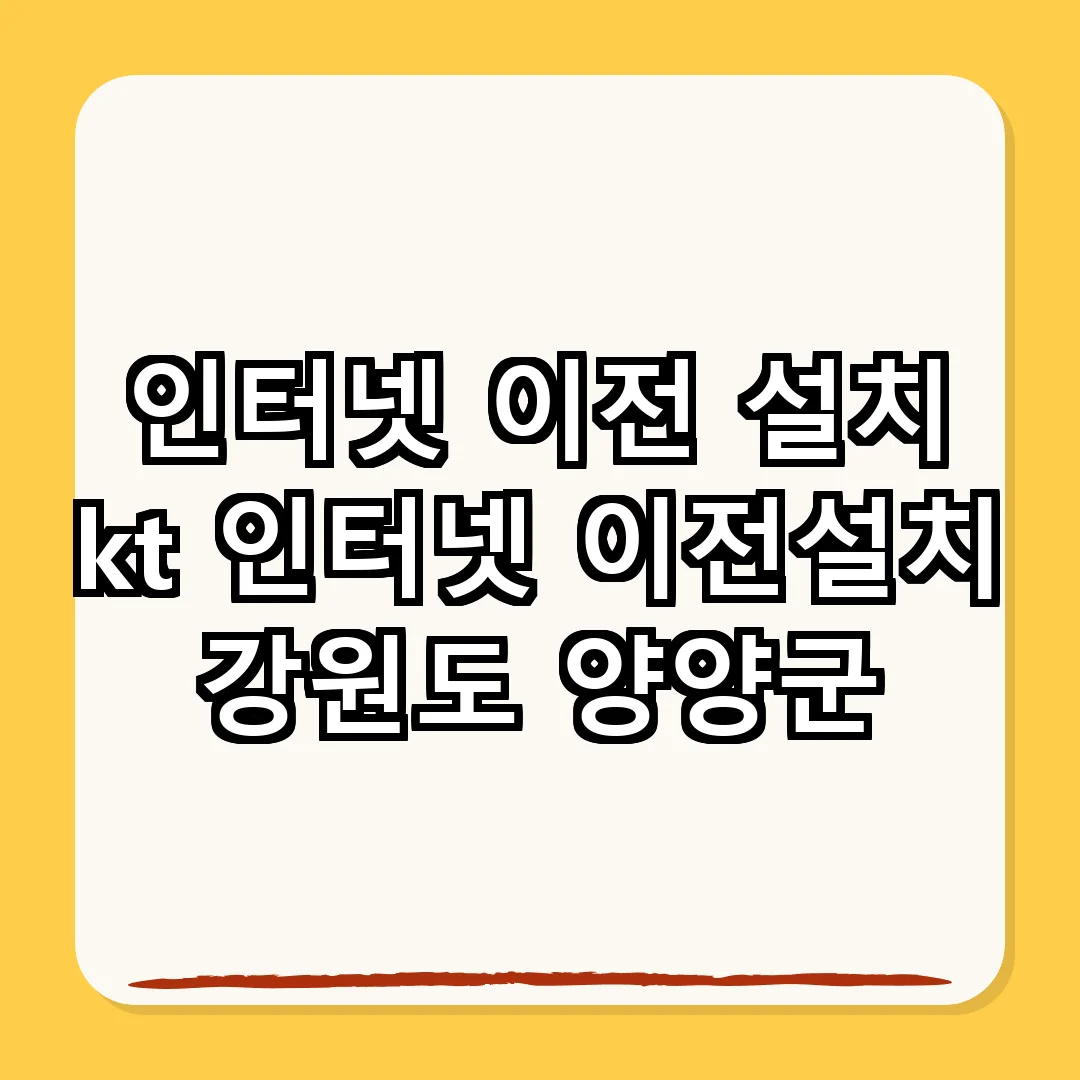 강원도 양양군에서의 인터넷 이전 설치는 원활한 생활을 위해 필수적입니다. 충분한 준비와 정보를 바탕으로 인터넷을 빠르게 사용할 수 있도록 해보세요.