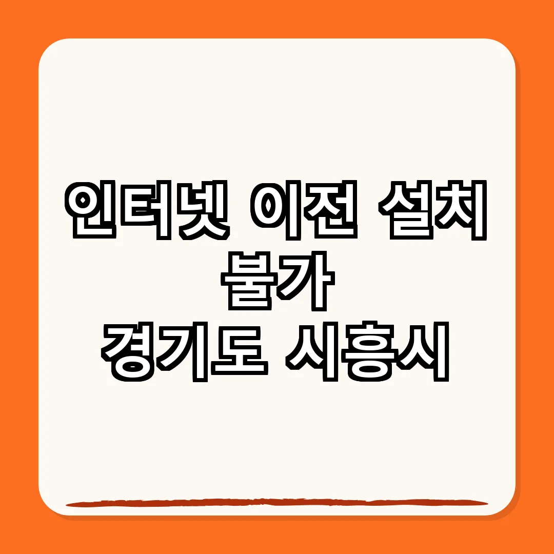 경기도 시흥시에서의 인터넷 이전 설치는 사전에 충분한 준비가 필요합니다. 필요한 정보를 미리 확인하고, 각 통신사의 정책을 숙지하여 원활한 인터넷 사용 환경을 조성하시기 바랍니다.