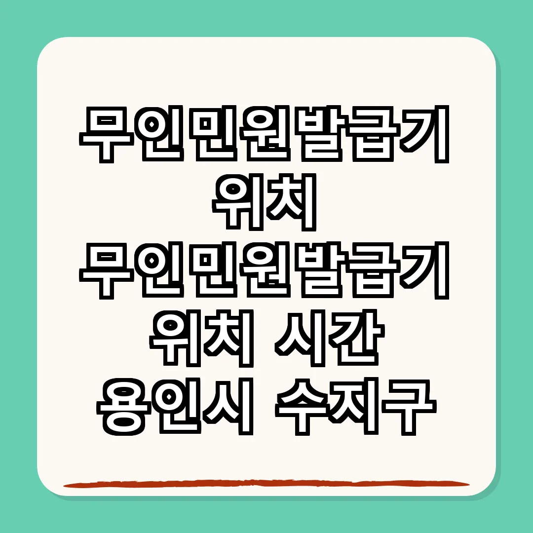 각 방법을 통해 용인시 수지구 내의 무인민원발급기를 손쉽게 찾을 수 있습니다. 또한, 방문 전 운영 시간도 함께 확인하는 것이 좋습니다.