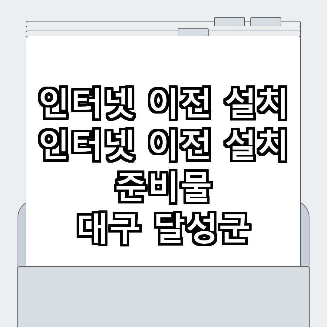 대구 달성군에서의 인터넷 이전 설치는 이사 과정에서 반드시 고려해야 할 요소입니다. 필요한 정보를 사전에 확인하고 준비하여 원활한 인터넷 사용을 보장하세요.