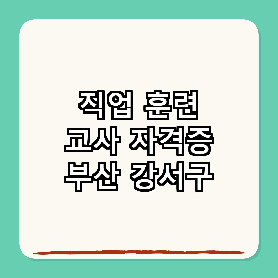 질문 1. 부산 강서구에서 직업 훈련 교사가 되려면 어떤 과정이 필요한가요?
