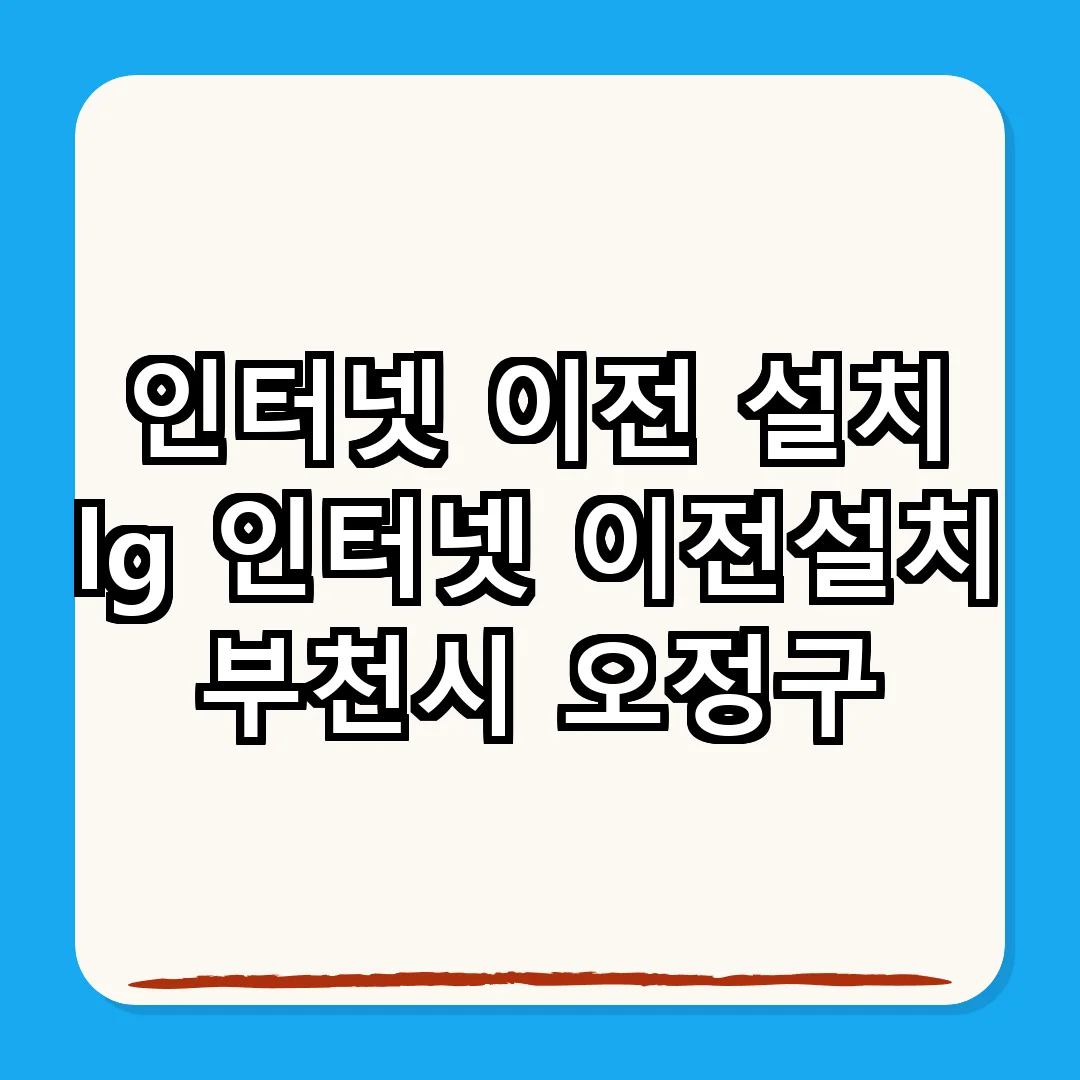 부천시 오정구에서의 인터넷 이전 설치는 이사에 있어 필수적인 요소입니다. 미리 필요한 정보를 확인하고 준비하는 것이 원활한 인터넷 사용을 보장합니다. 통신사의 정책을 이해하고 최적의 선택을 하여 새로운 집에서도 편리한 인터넷 환경을 구축하세요.