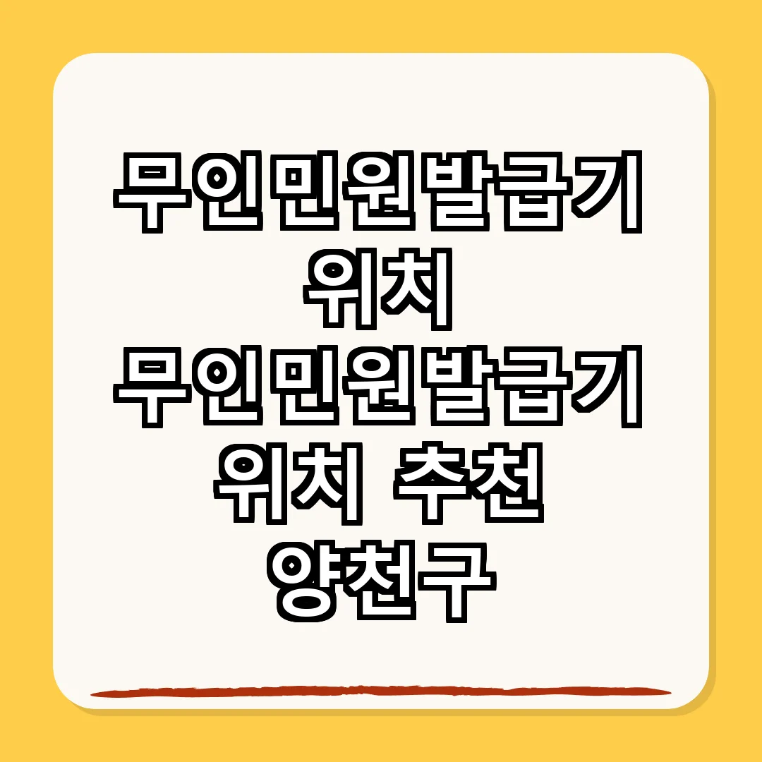 무인민원발급기는 시민들이 필요로 하는 각종 공공서류를 빠르고 편리하게 발급받을 수 있는 기계입니다. 양천구 내에도 여러 곳에 설치되어 있어 주민들이 손쉽게 이용할 수 있습니다. 이 무인민원발급기는 각종 증명서를 발급받는 데 유용하며, 운영 시간과 위치에 따라 서비스가 달라질 수 있으니 미리 확인하는 것이 중요합니다. 이번 포스트에서는 양천구의 무인민원발급기 위치와 관련된 정보를 자세히 알아보겠습니다.