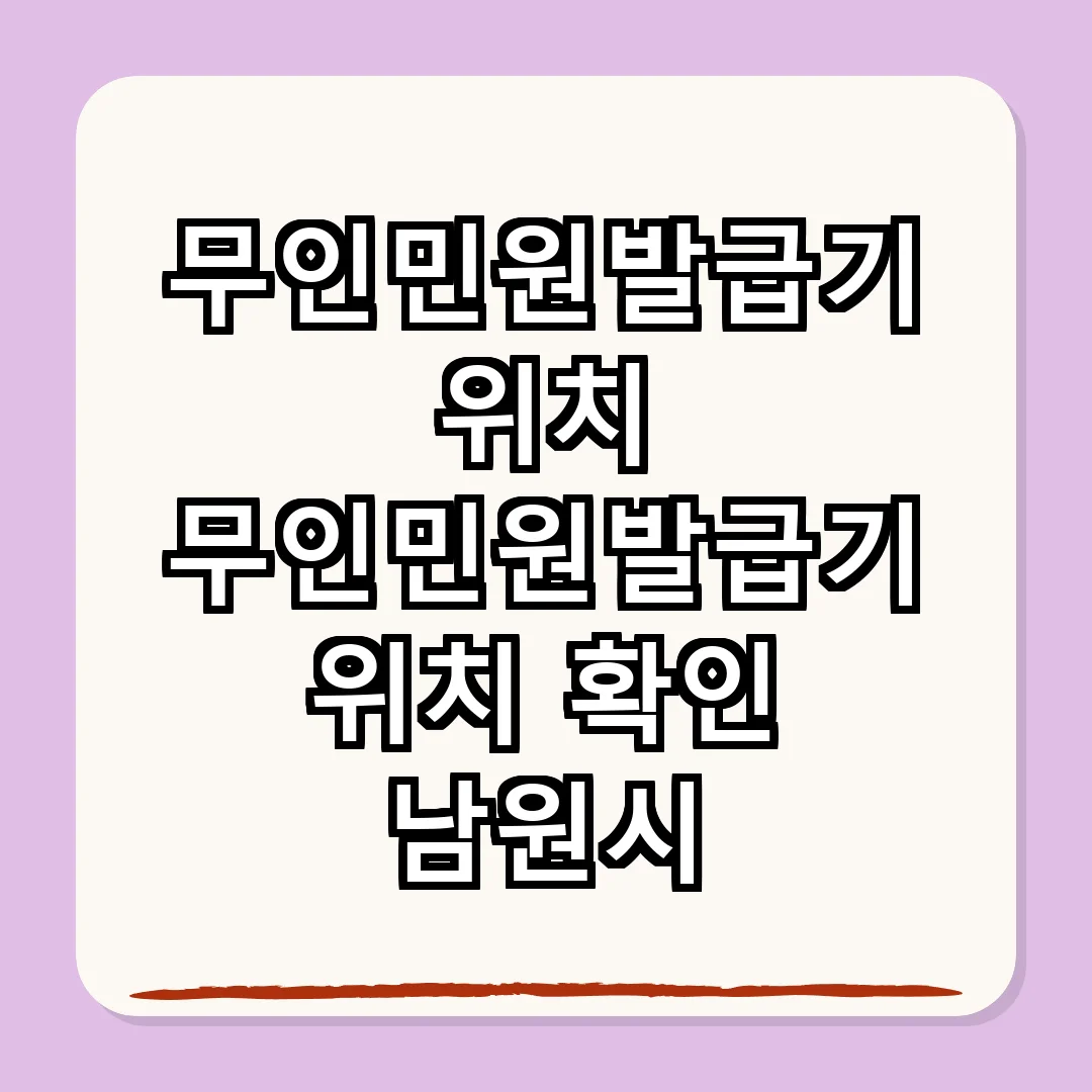 남원시의 무인민원발급기는 다양한 서류를 제공하여 주민들의 편의를 돕고 있습니다. 운영 시간과 위치를 확인하여 필요한 서류를 쉽게 발급받으세요.