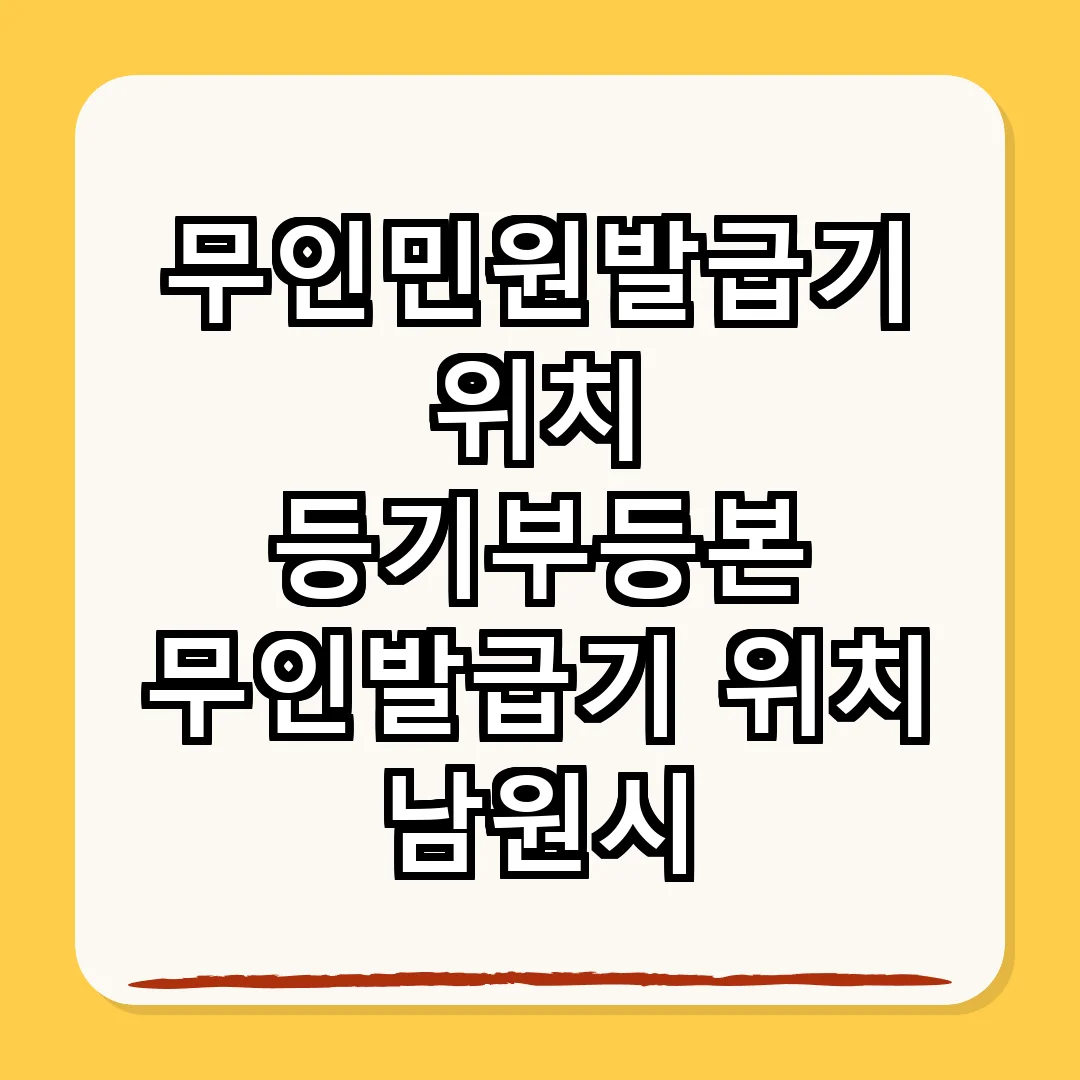 남원시 내 무인민원발급기를 찾는 것은 간단합니다. 각 발급기의 위치는 남원시청 홈페이지나 모바일 앱을 통해 확인할 수 있으며, 주변의 공공기관과 대형마트 등에서 쉽게 접근 가능합니다. 발급기 위치를 미리 체크하여 편리하게 이용하세요.