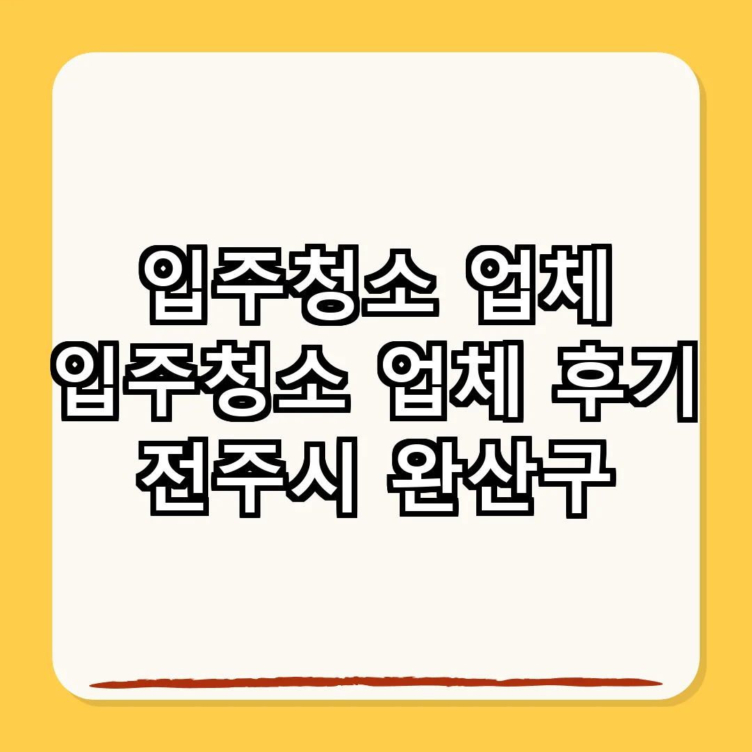 전주시 완산구의 입주청소 업체는 인터넷 검색이나 지역 커뮤니티를 통해 찾을 수 있습니다. 후기와 평점을 참고하여 선택하세요.
